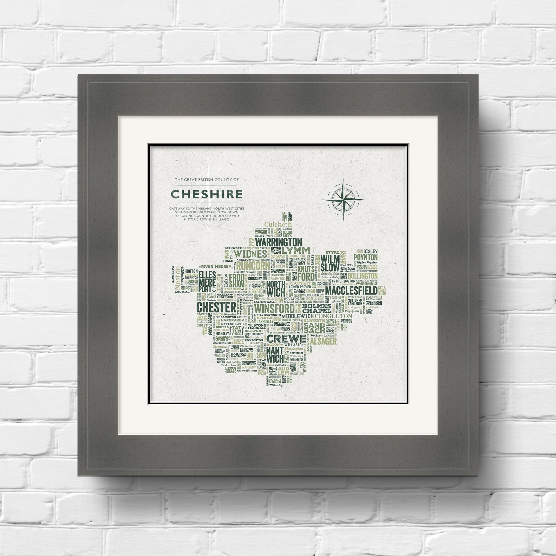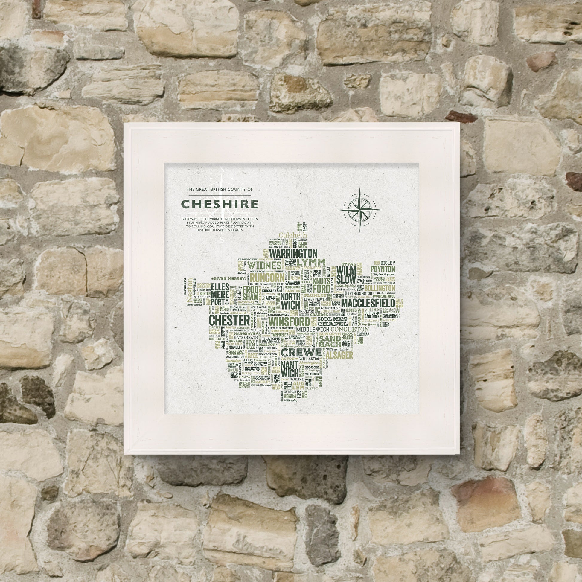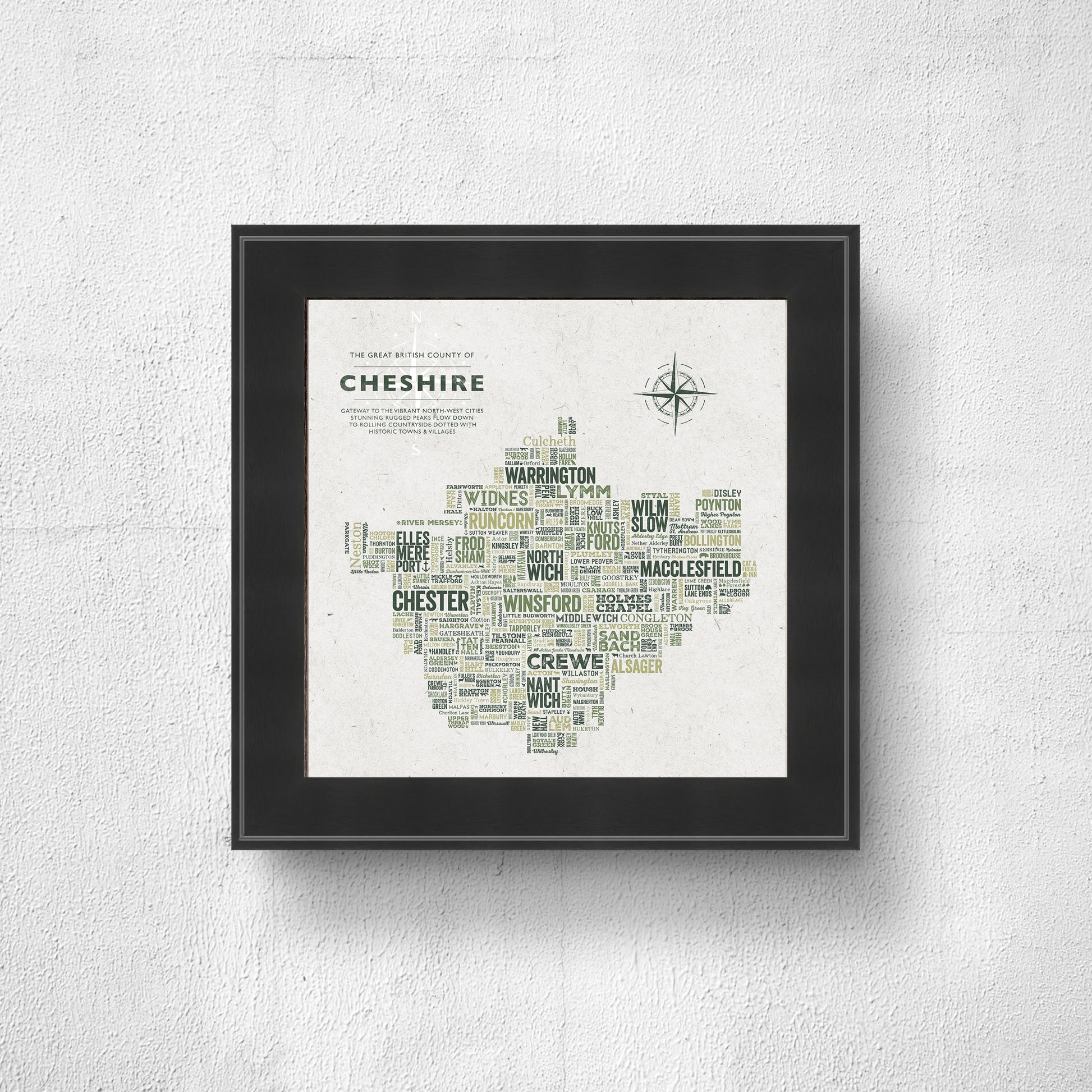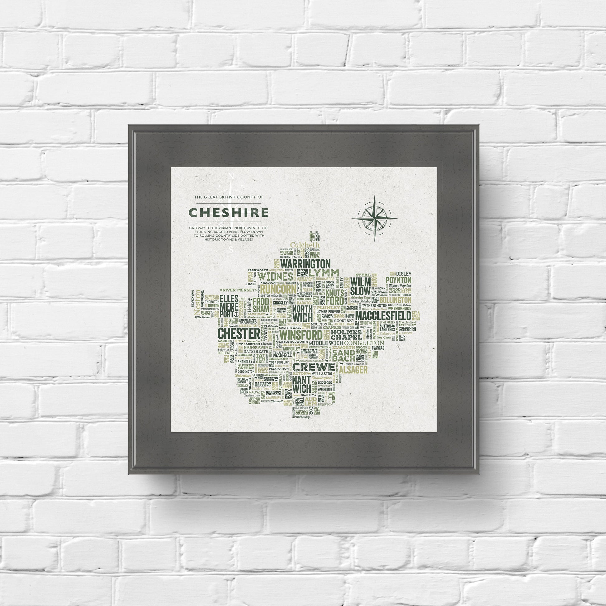 The Great British County of CHESHIRE is a perfect feature for your home, as a gift, or to celebrate a milestone or special event.