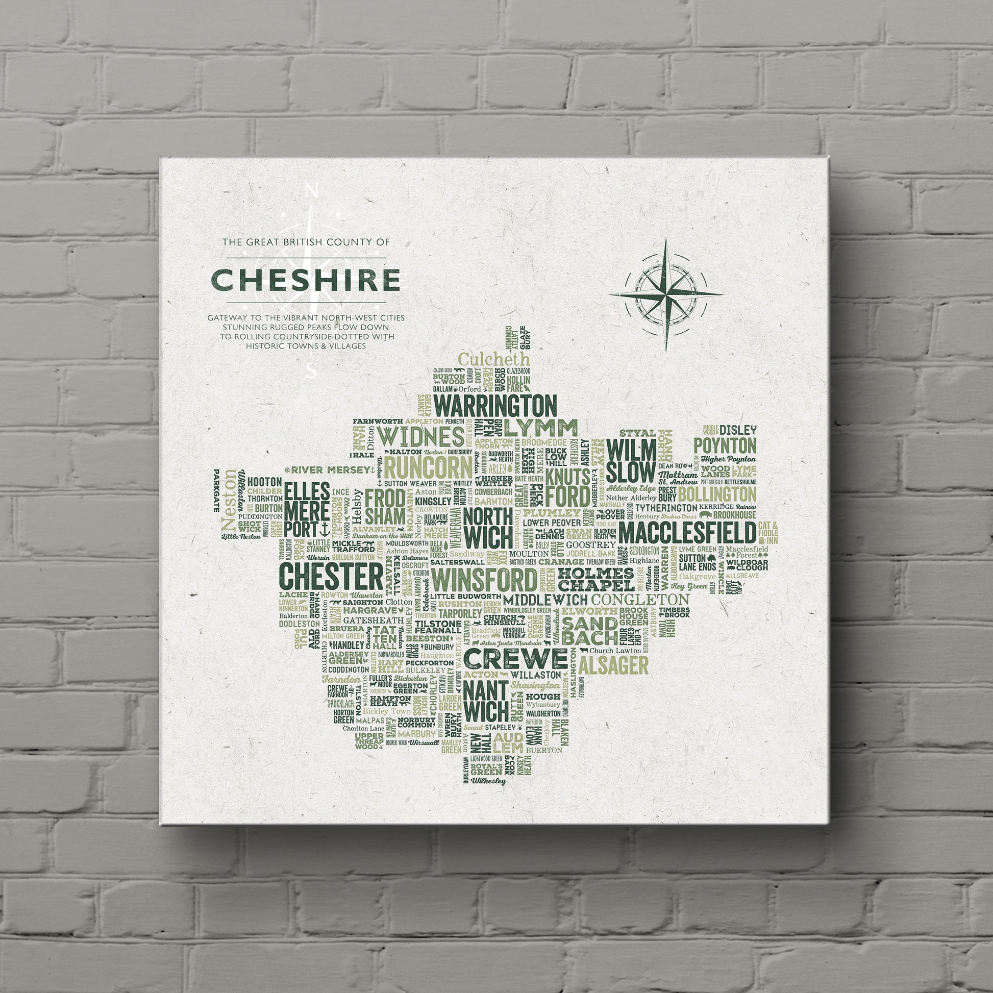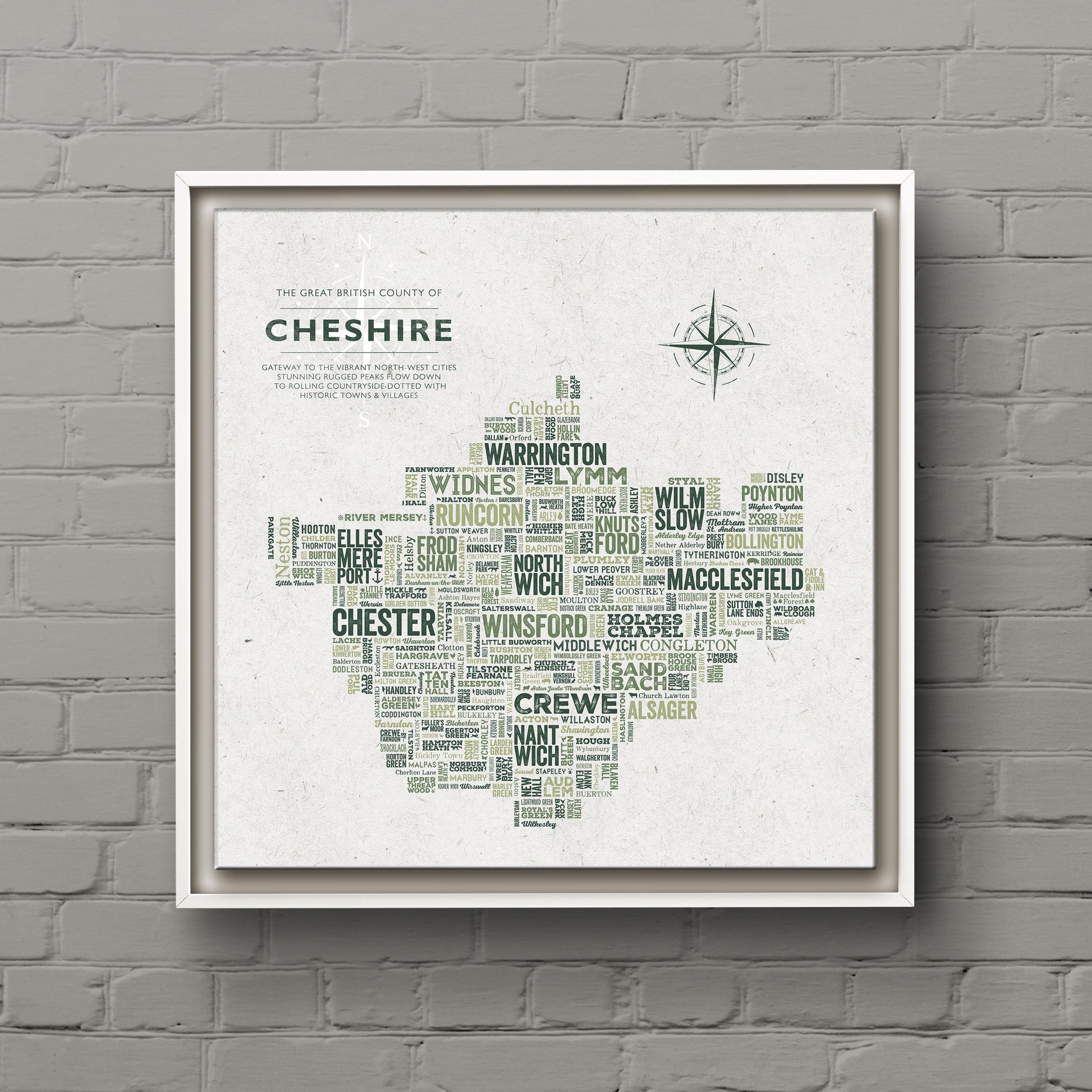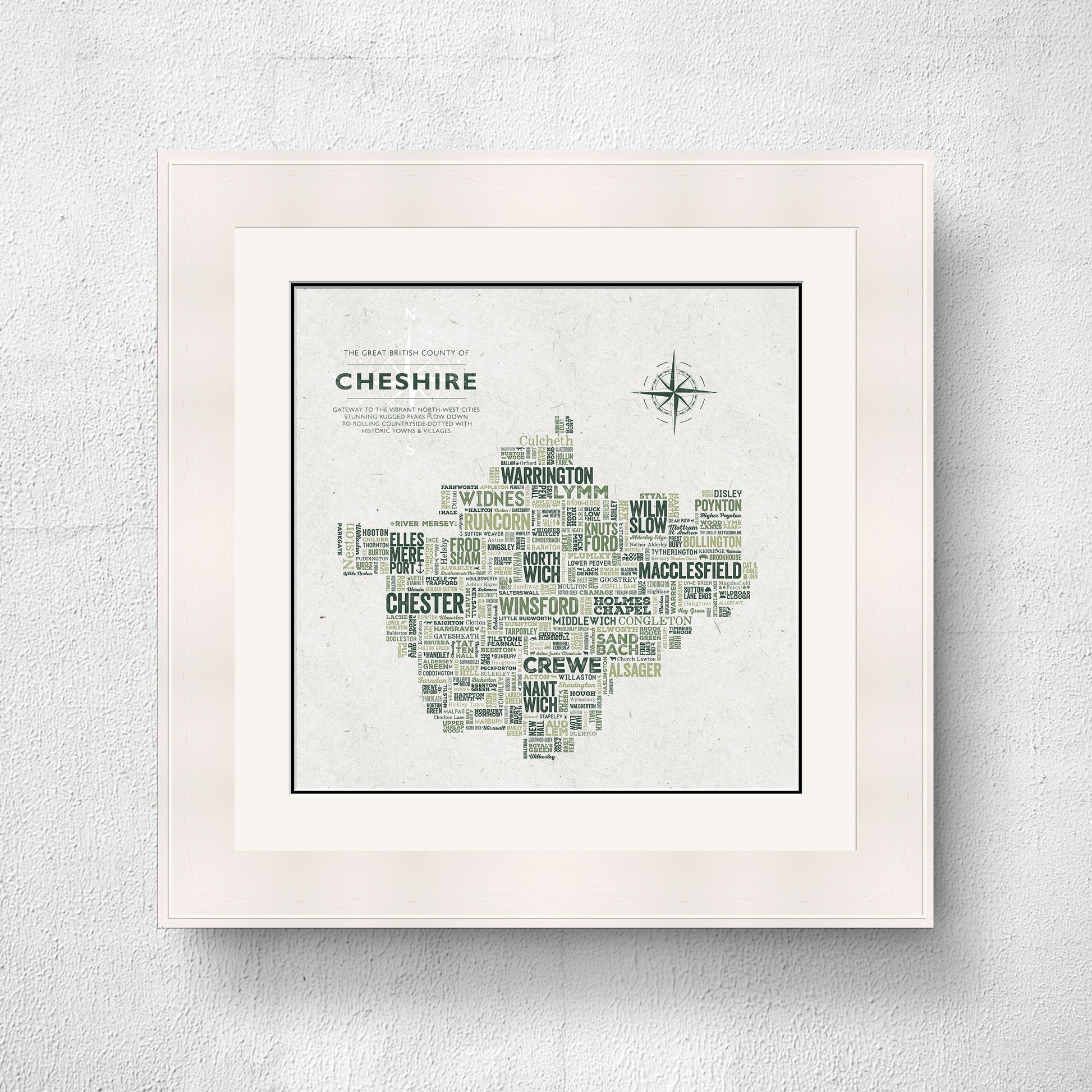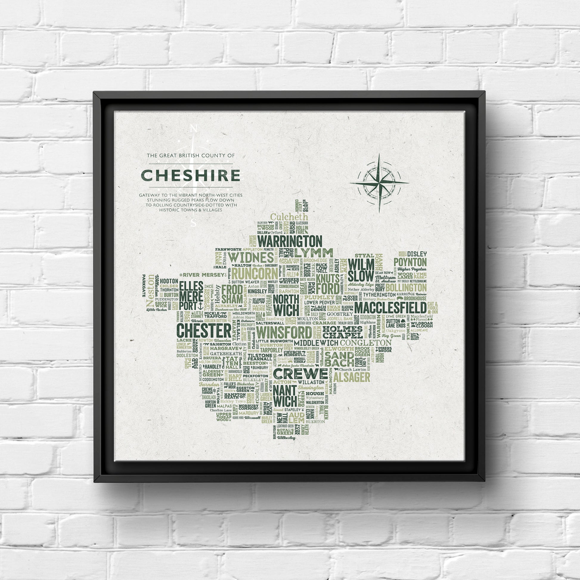 The Great British County of CHESHIRE is a perfect feature for your home, as a gift, or to celebrate a milestone or special event.
