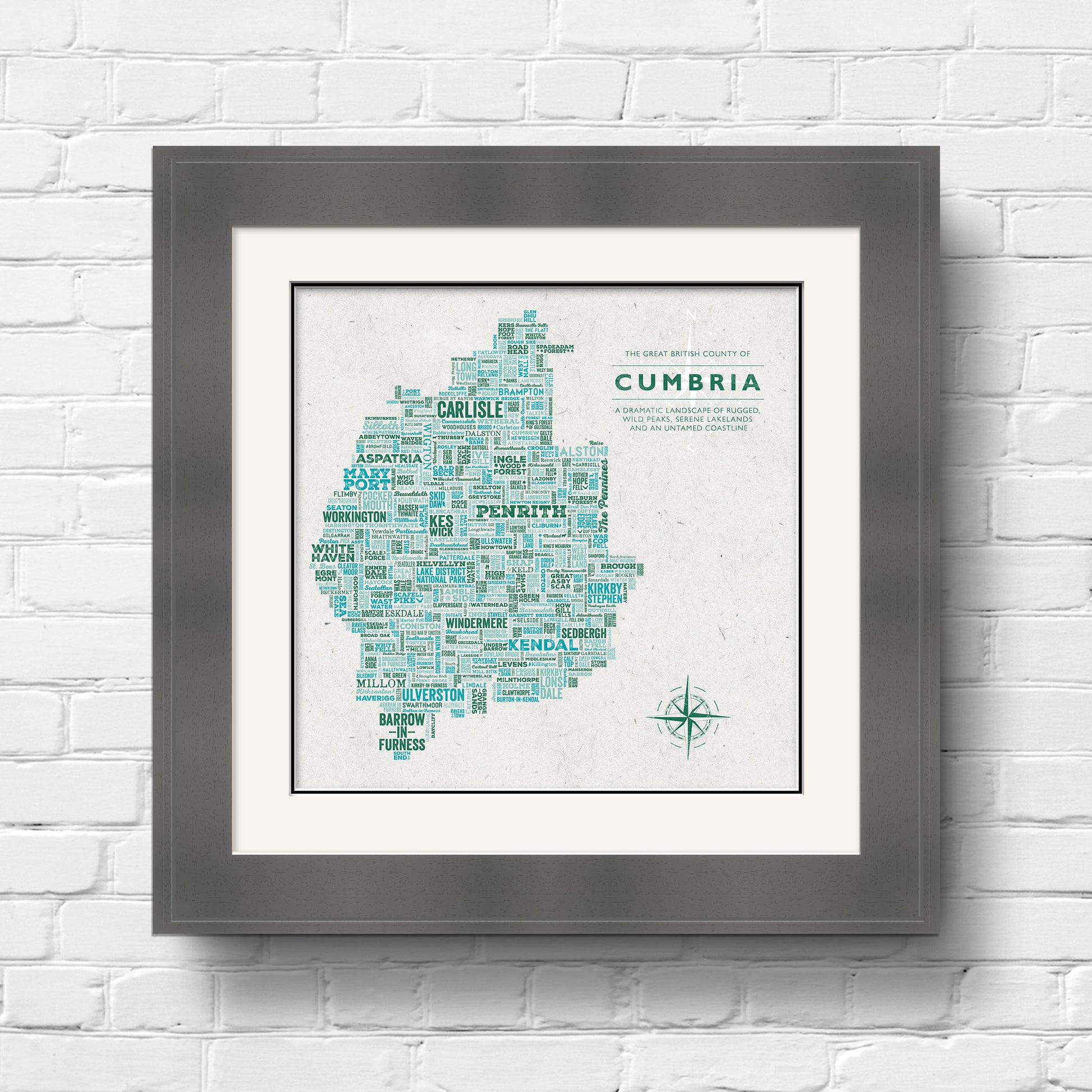 The Great British County of CUMBRIA is a perfect feature for your home, as a gift, or to celebrate a milestone or special event.