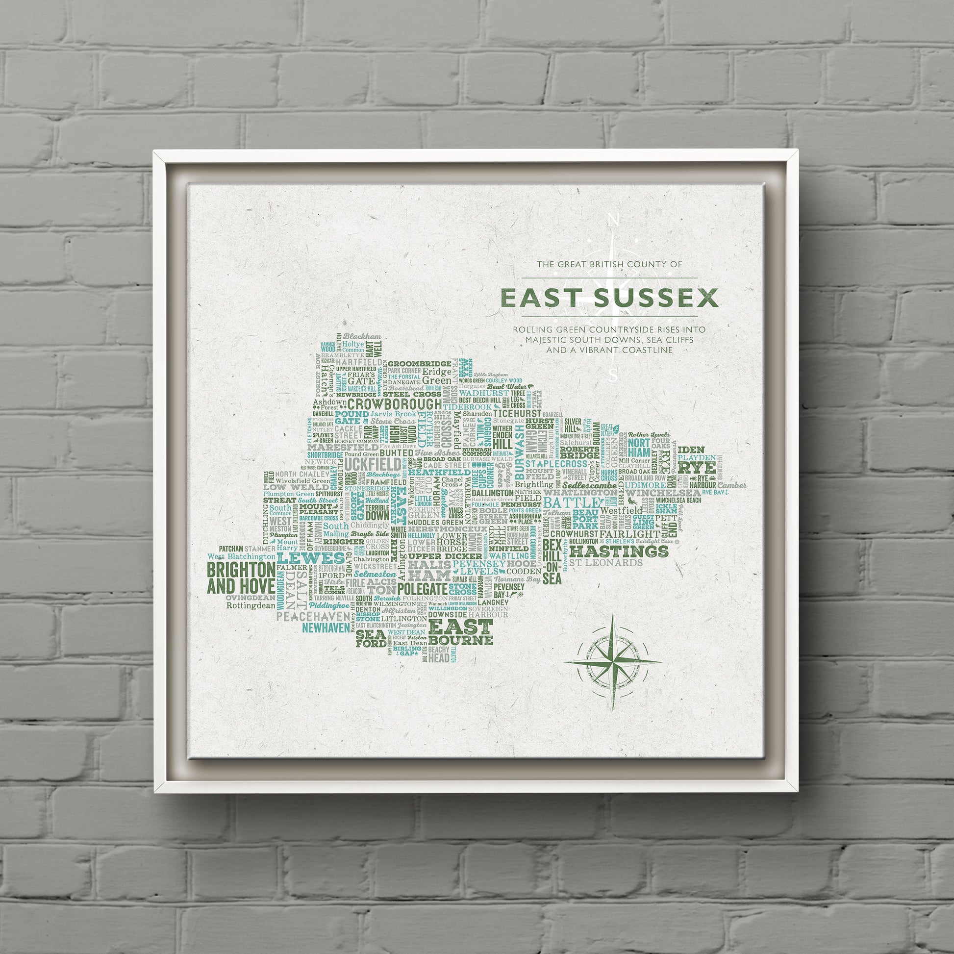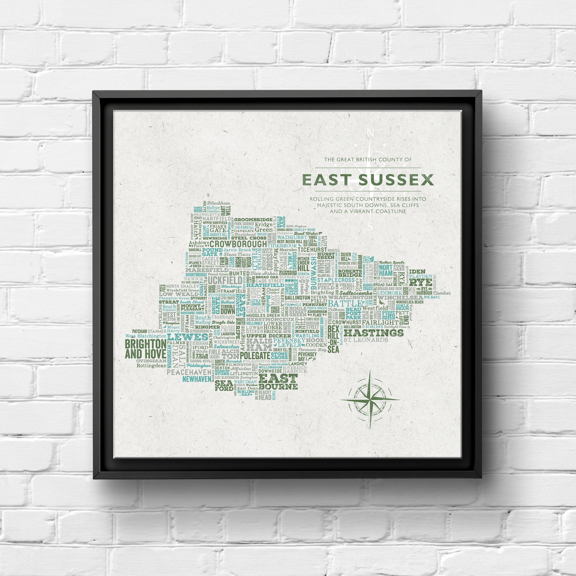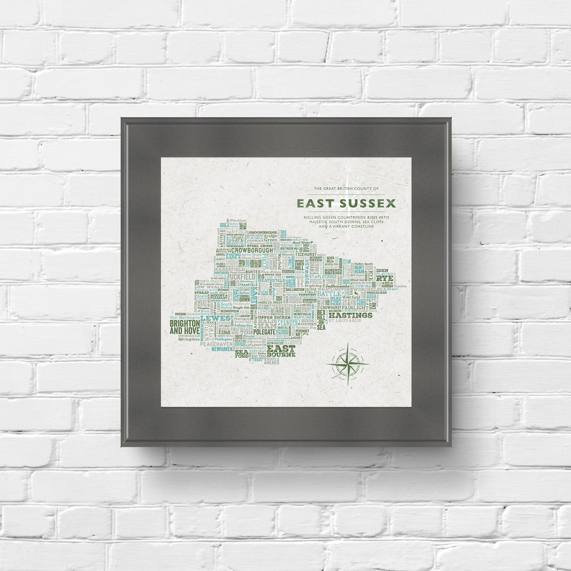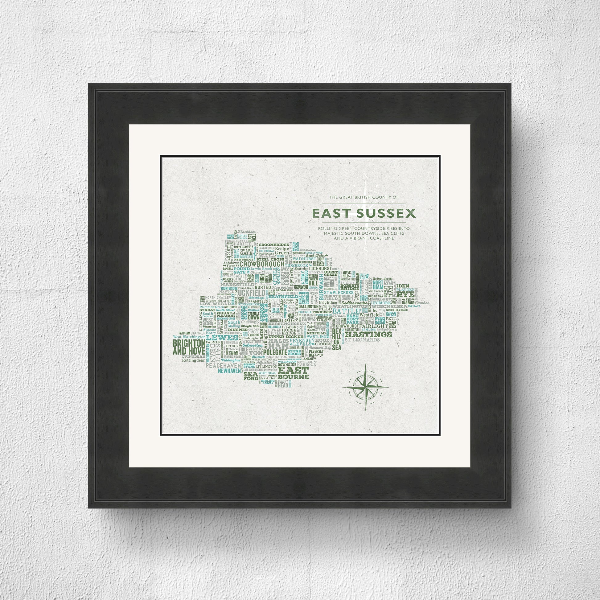 The Great British County of EAST SUSSEX is a perfect feature for your home, as a gift, or to celebrate a milestone or special event.