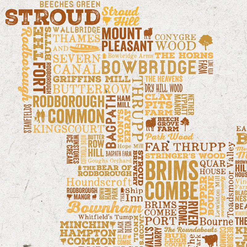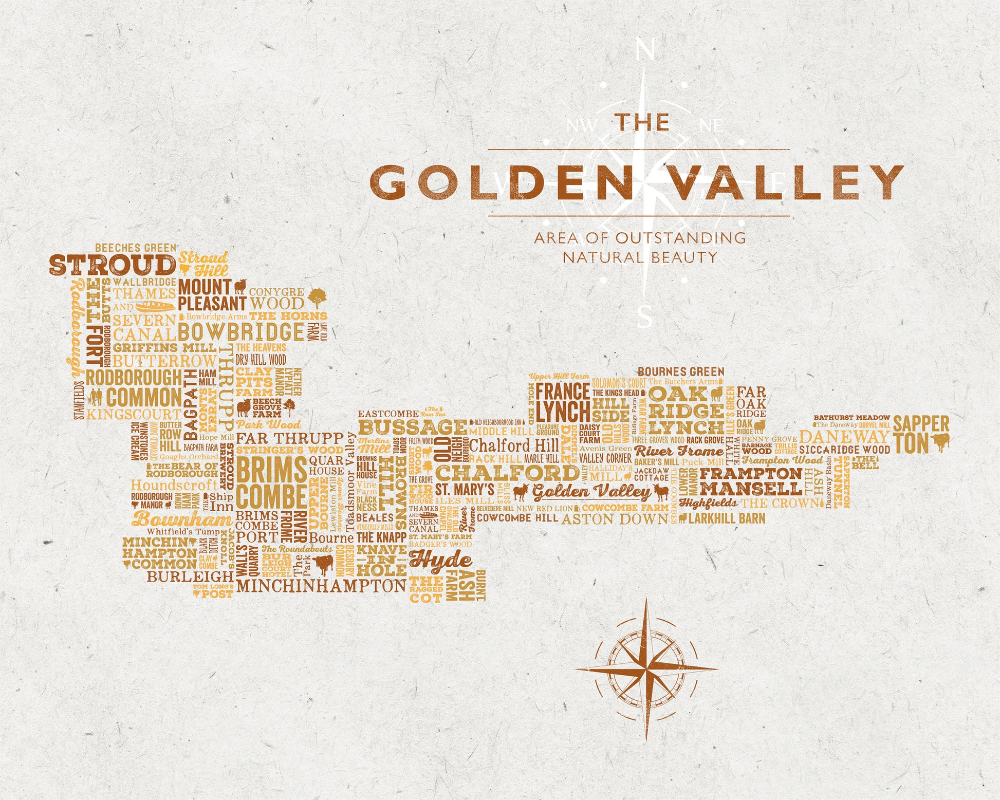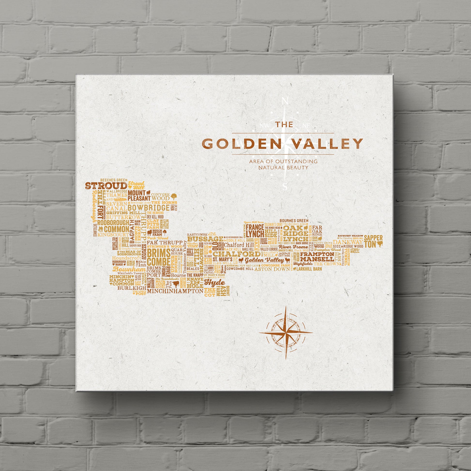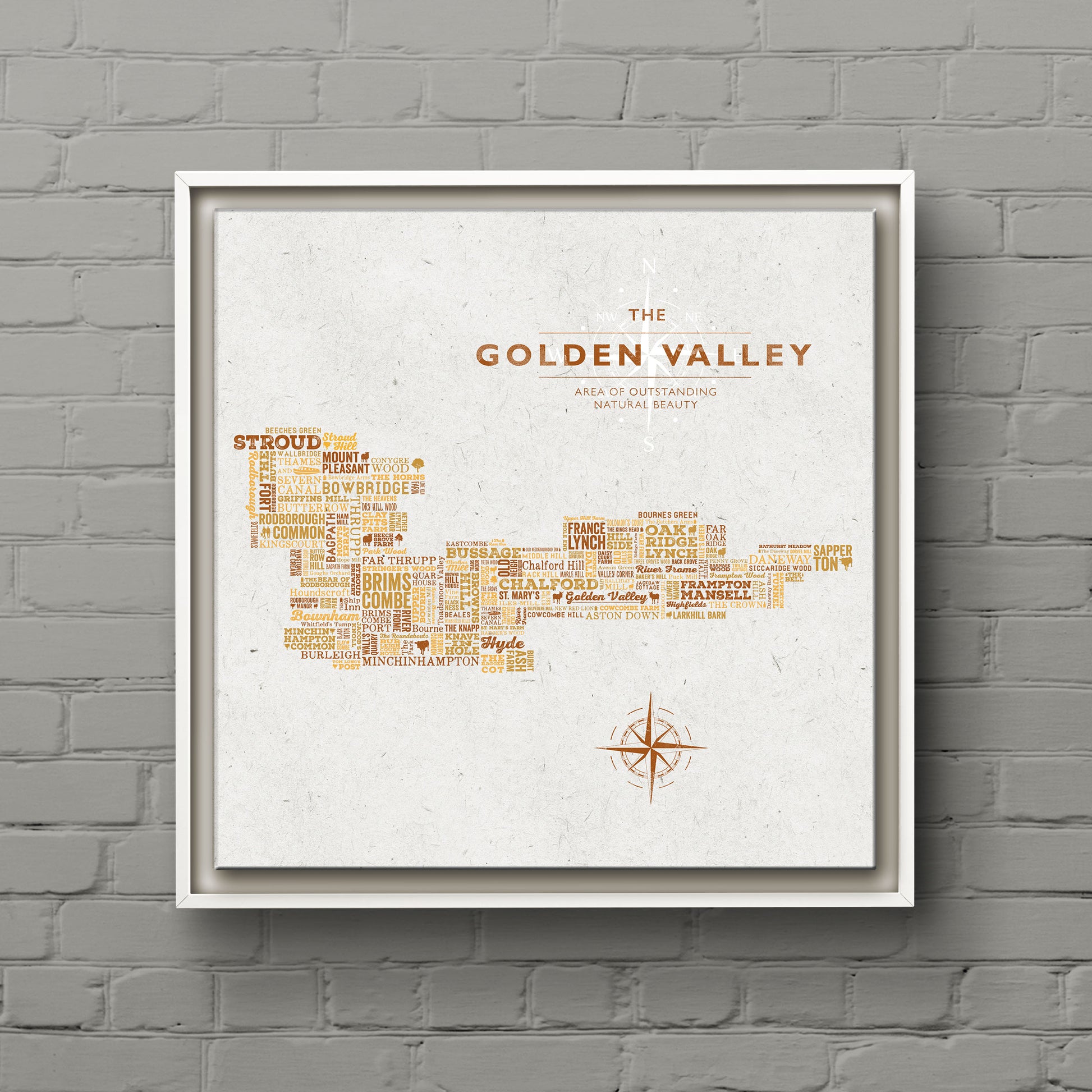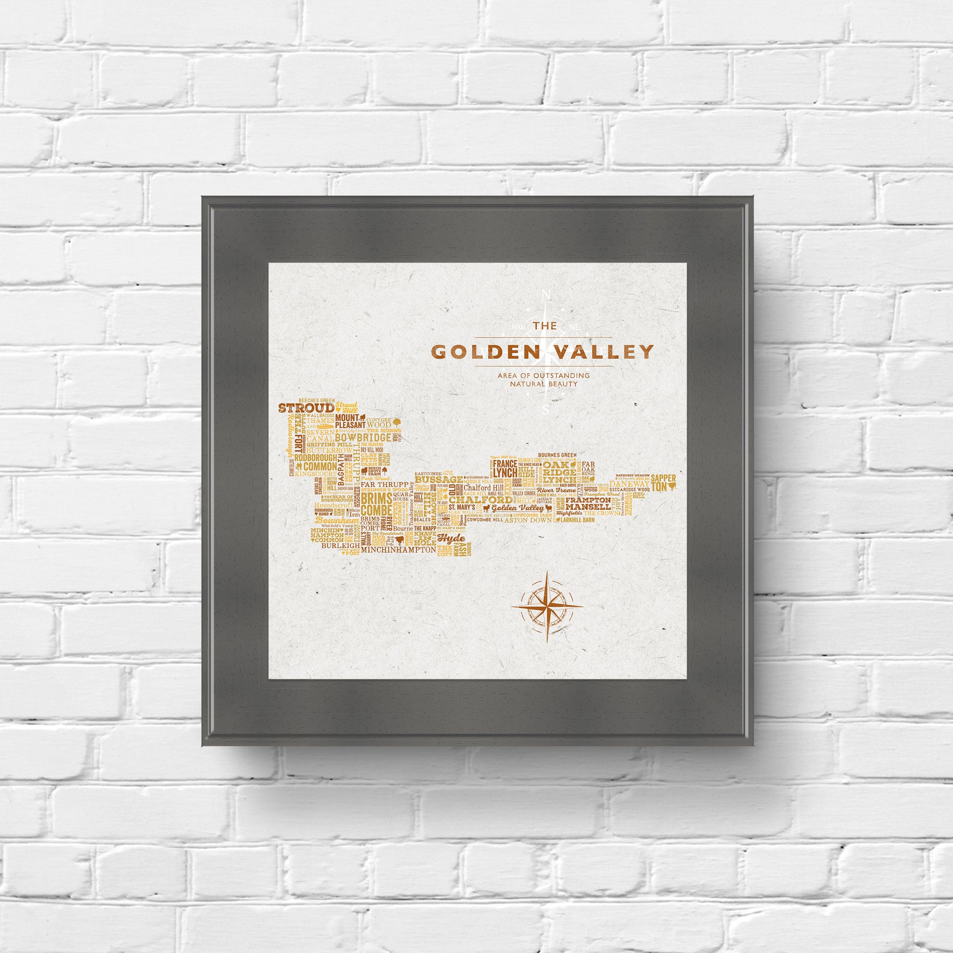 Celebrating the THE GOLDEN VALLEY, GLOUCESTERSHIRE WITHIN THE COTSWOLDS, AN AREA OF OUTSTANDING NATURAL BEAUTY The Golden Valley map is a perfect feature for your home, as a gift, or to celebrate a milestone or special event. Family, friends, colleagues… will love searching for their home town or village, where they were born, or got hitched and holidayed! Our beautifully created and detailed typographic designs are produced using high resolution giclée print on fine art paper or canvas. With a choice of frames, colour options and sizes, you can add that individual touch. When it’s ready, we’ll post it anywhere in the United Kingdom. FADED GRANDEUR / Designed and lovingly handmade in Great Britain