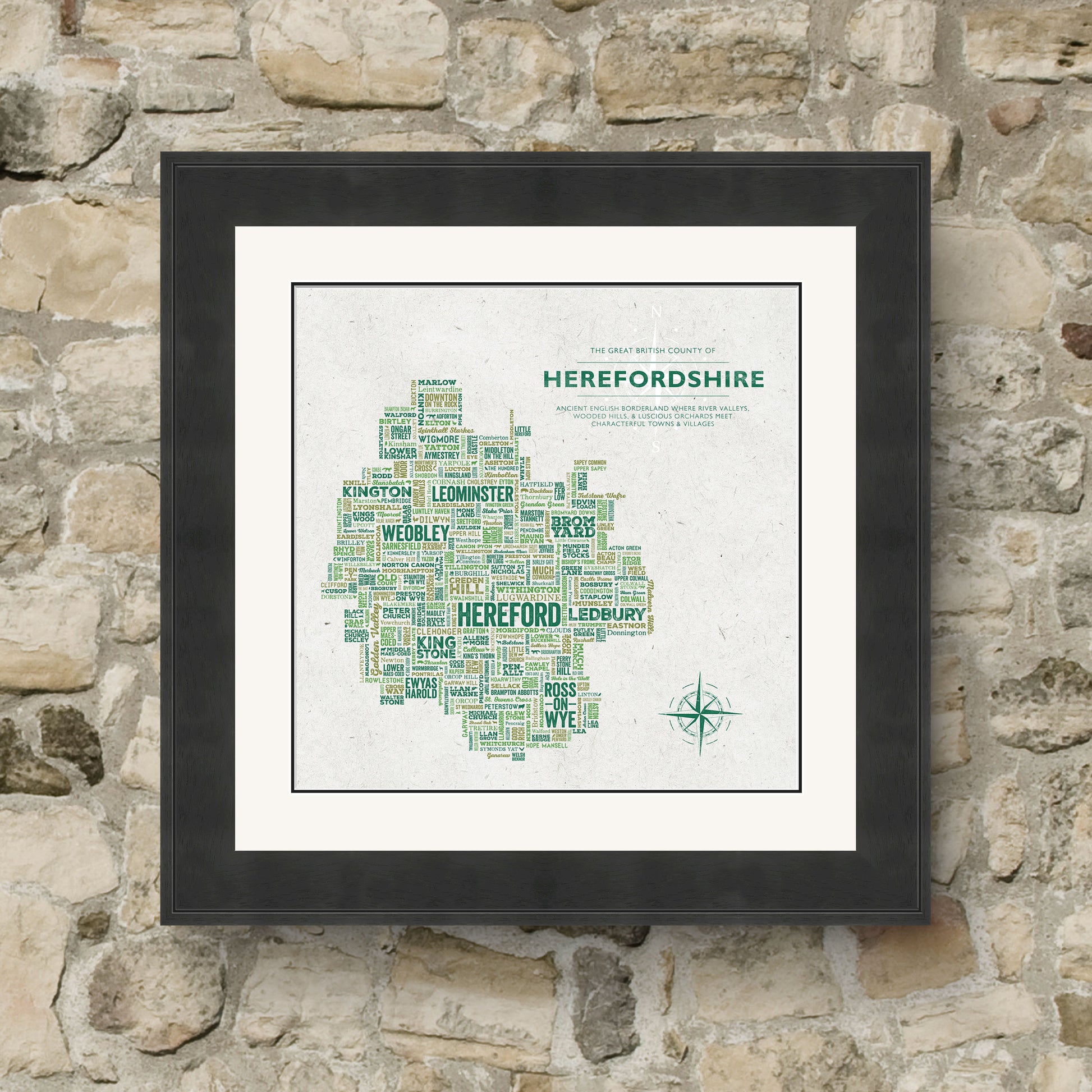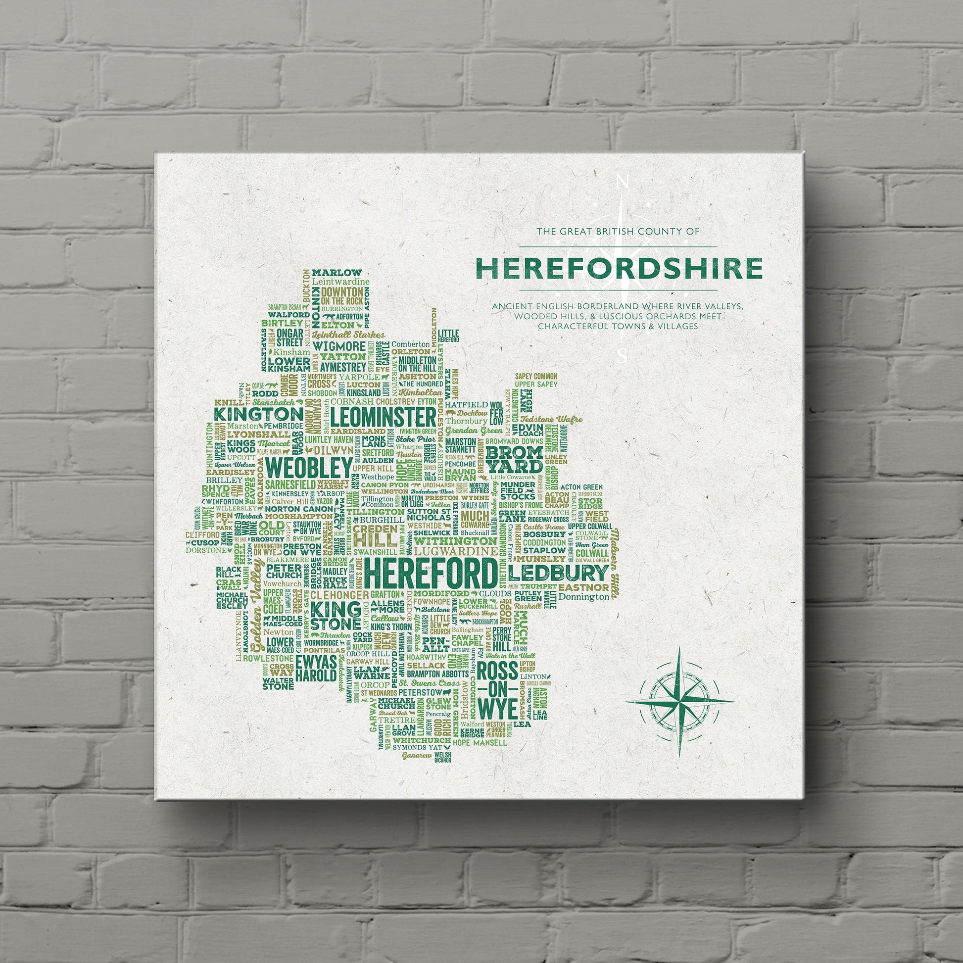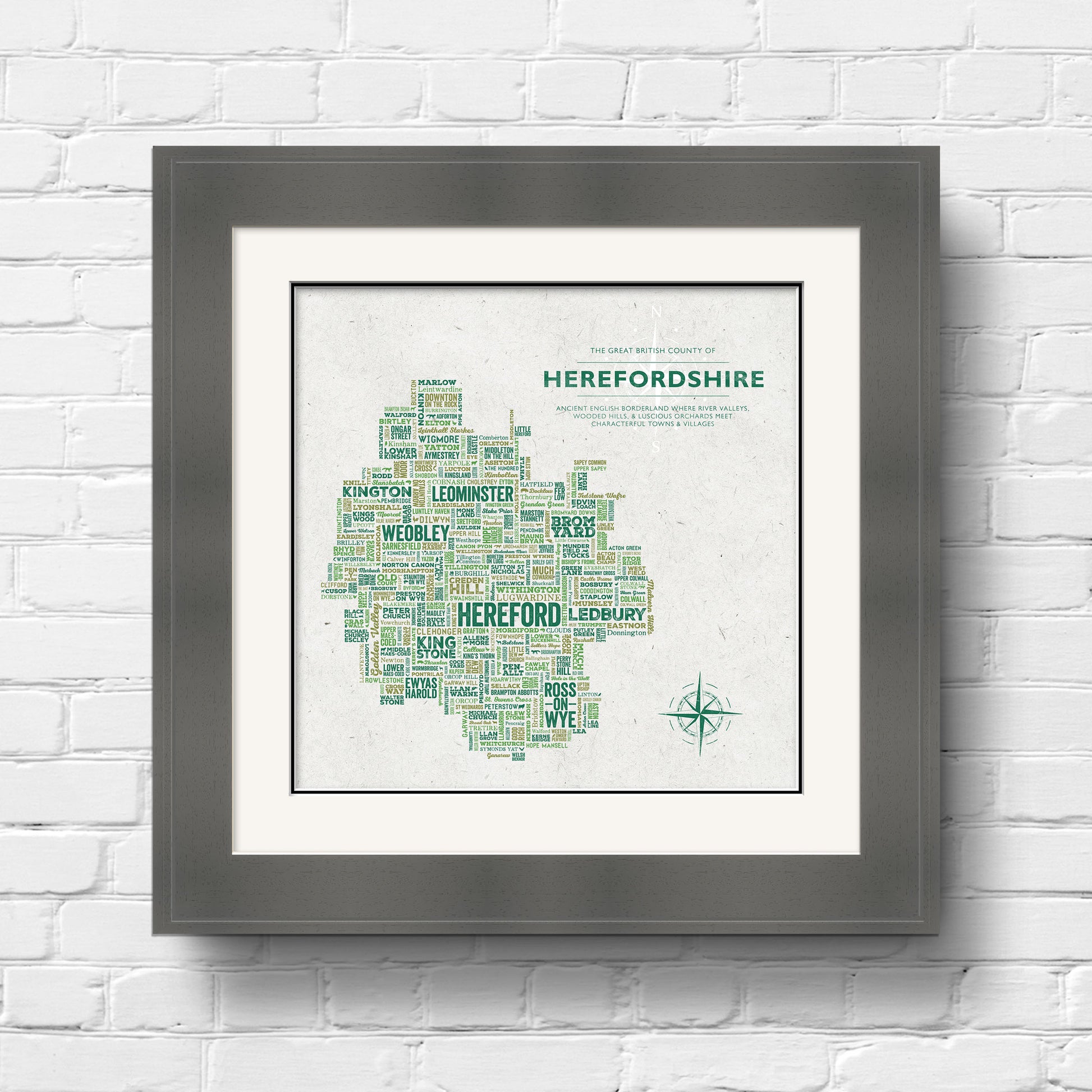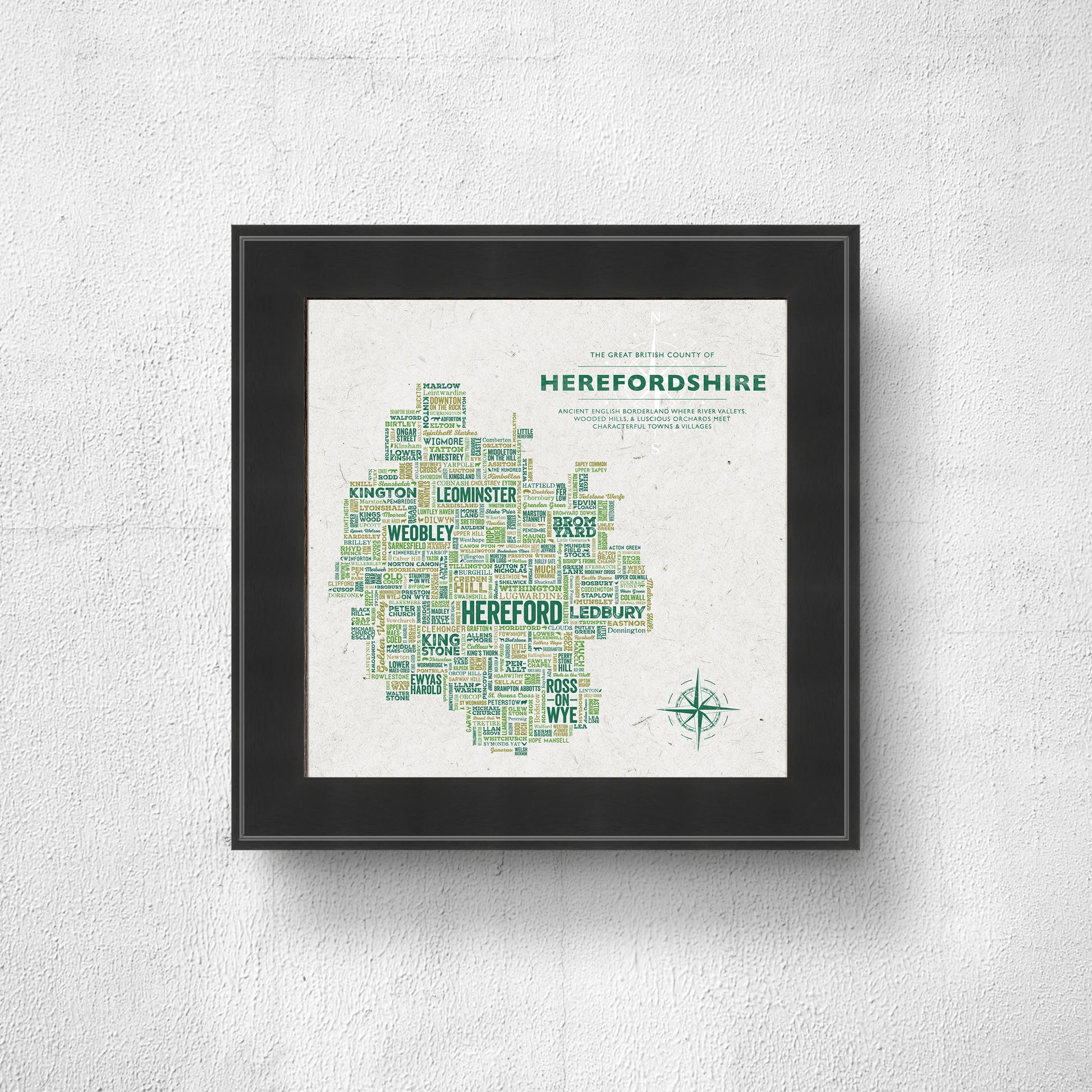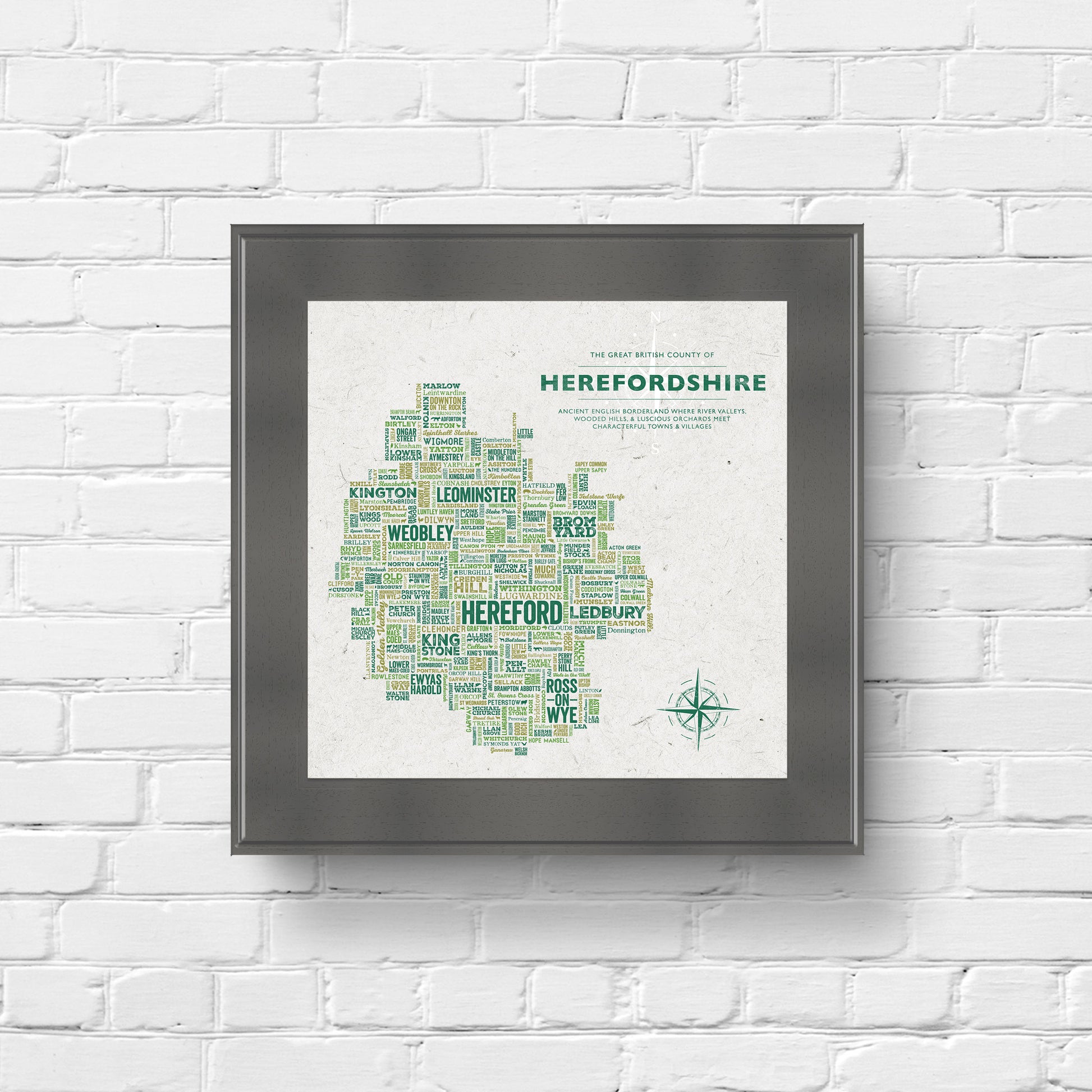 The Great British County of HEREFORDSHIRE is a perfect feature for your home, as a gift, or to celebrate a milestone or special event.