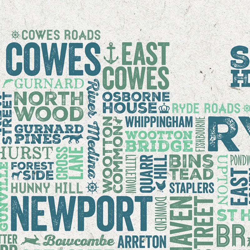 Celebrate your love for ISLE OF WIGHT with this beautiful typographic map. Whether you're from Newport, Cowes, Ryde, Sandown, Shanklin, Ventnor, or Yarmouth - this artwork captures the spirit of the county.