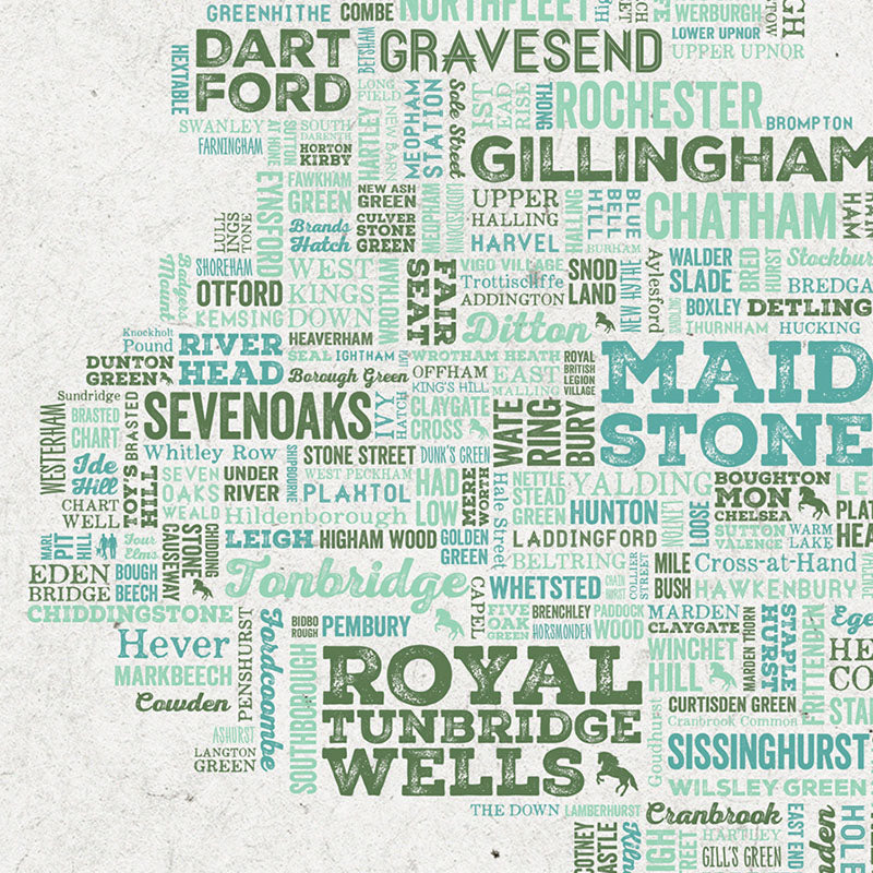 Celebrate your love for KENT with this beautiful typographic map. Whether you're from Canterbury, Maidstone, Dover, Tunbridge Wells, Rochester, Whitstable, or Margate - this artwork captures the spirit of the county.