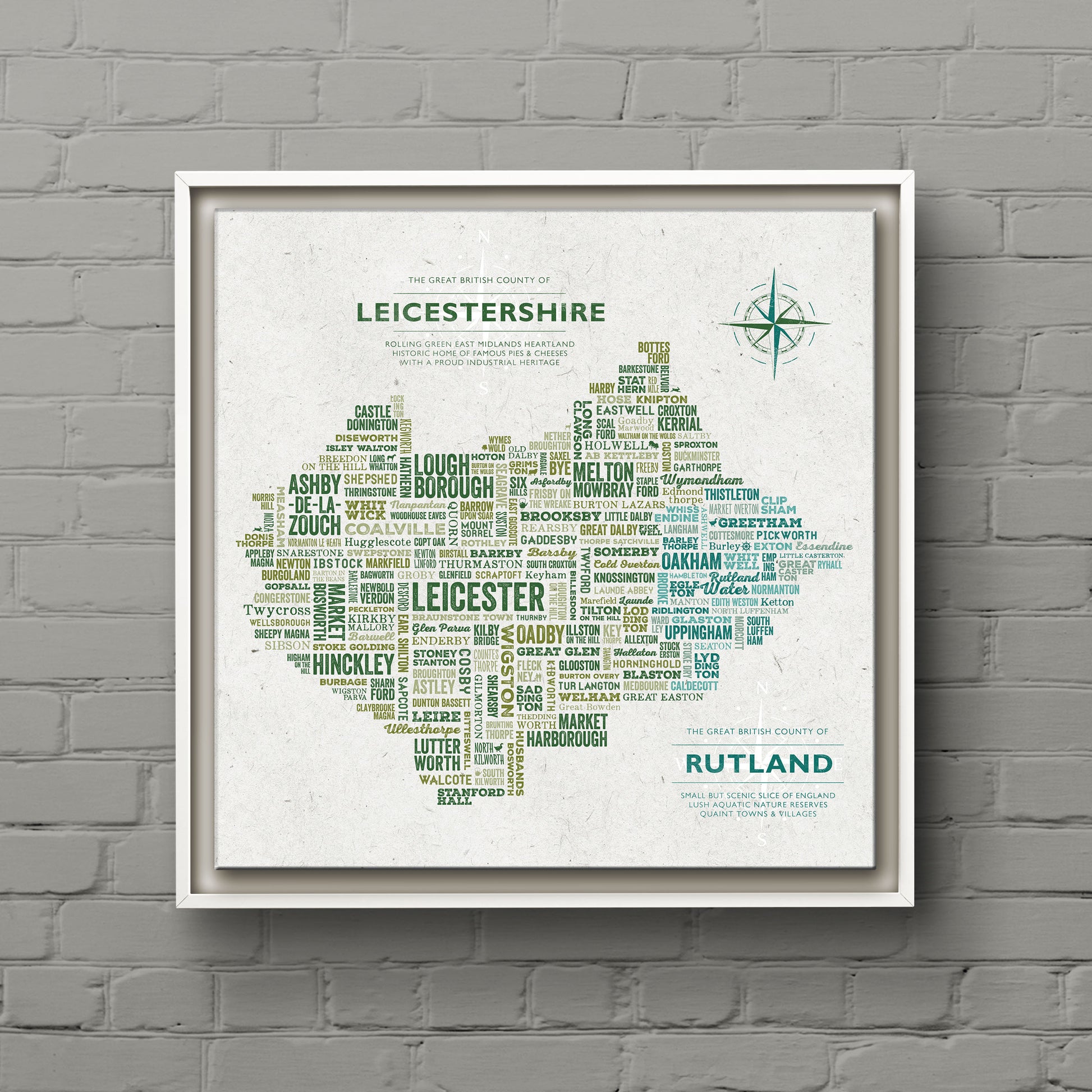 The Great British County of LEICESTERSHIRE is a perfect feature for your home, as a gift, or to celebrate a milestone or special event.