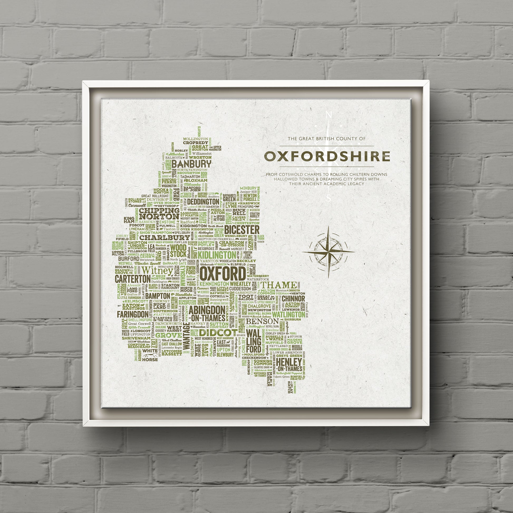 The Great British County of OXFORDSHIRE is a perfect feature for your home, as a gift, or to celebrate a milestone or special event.