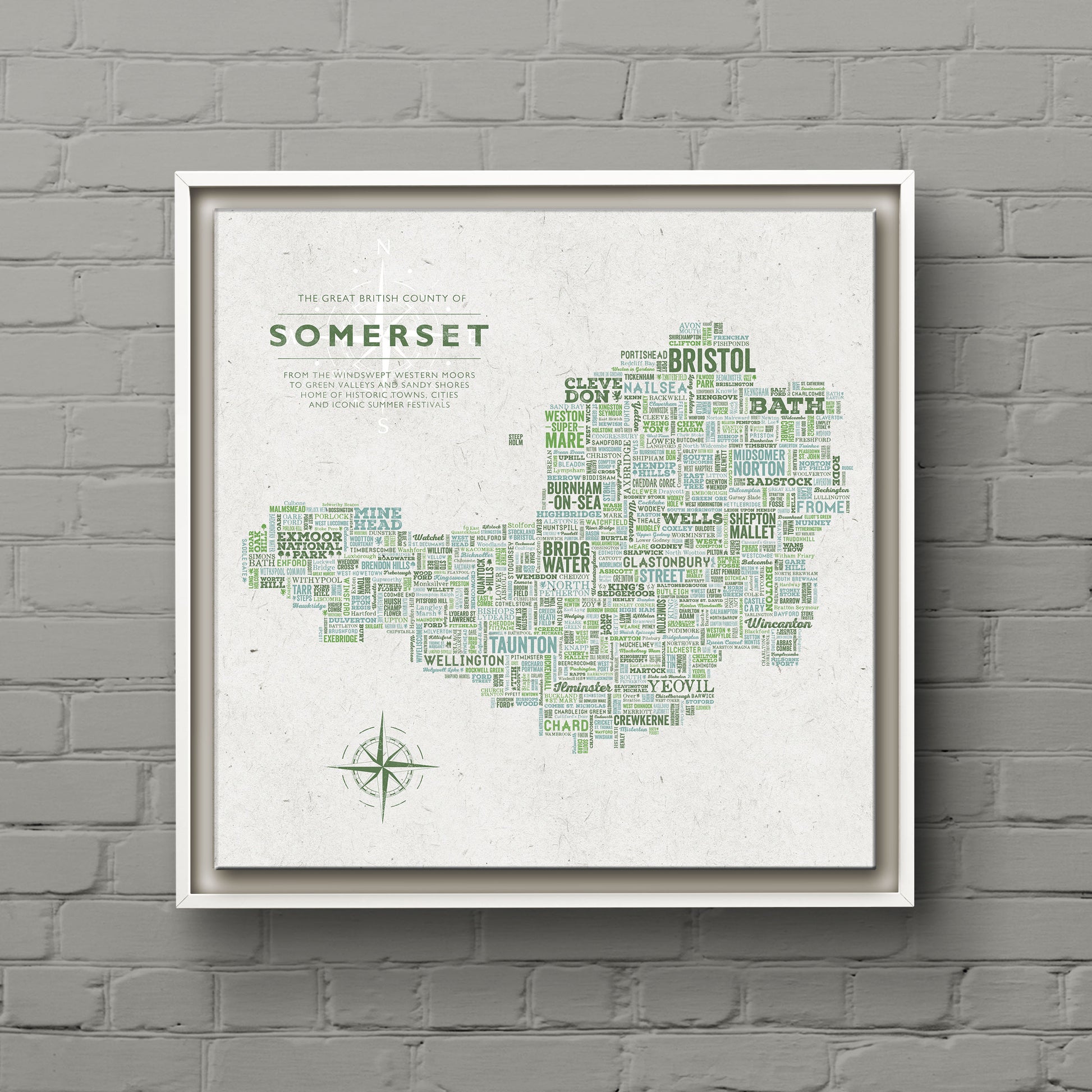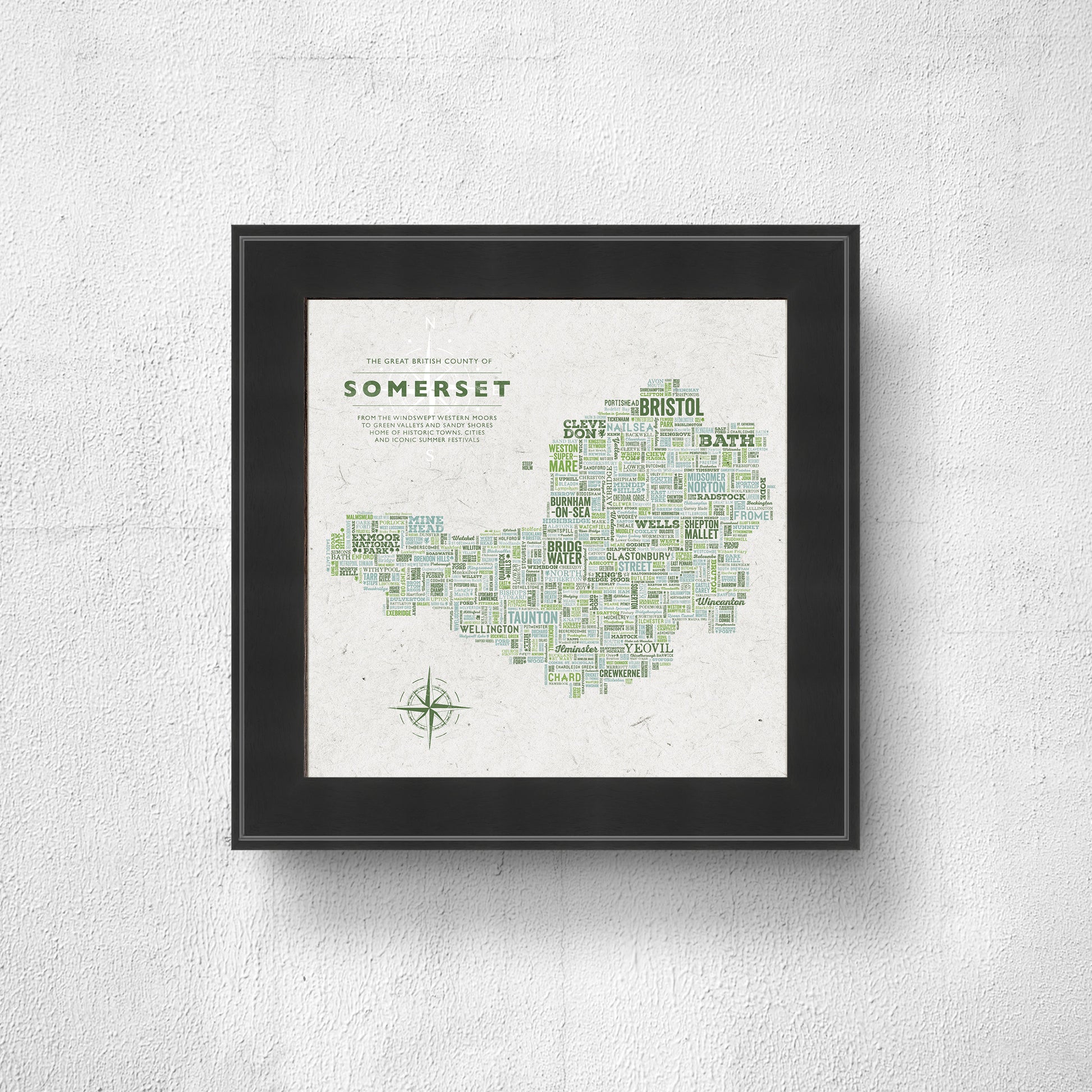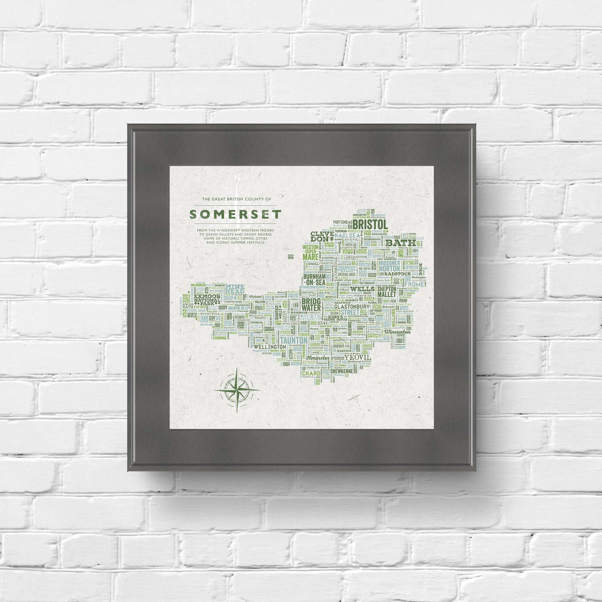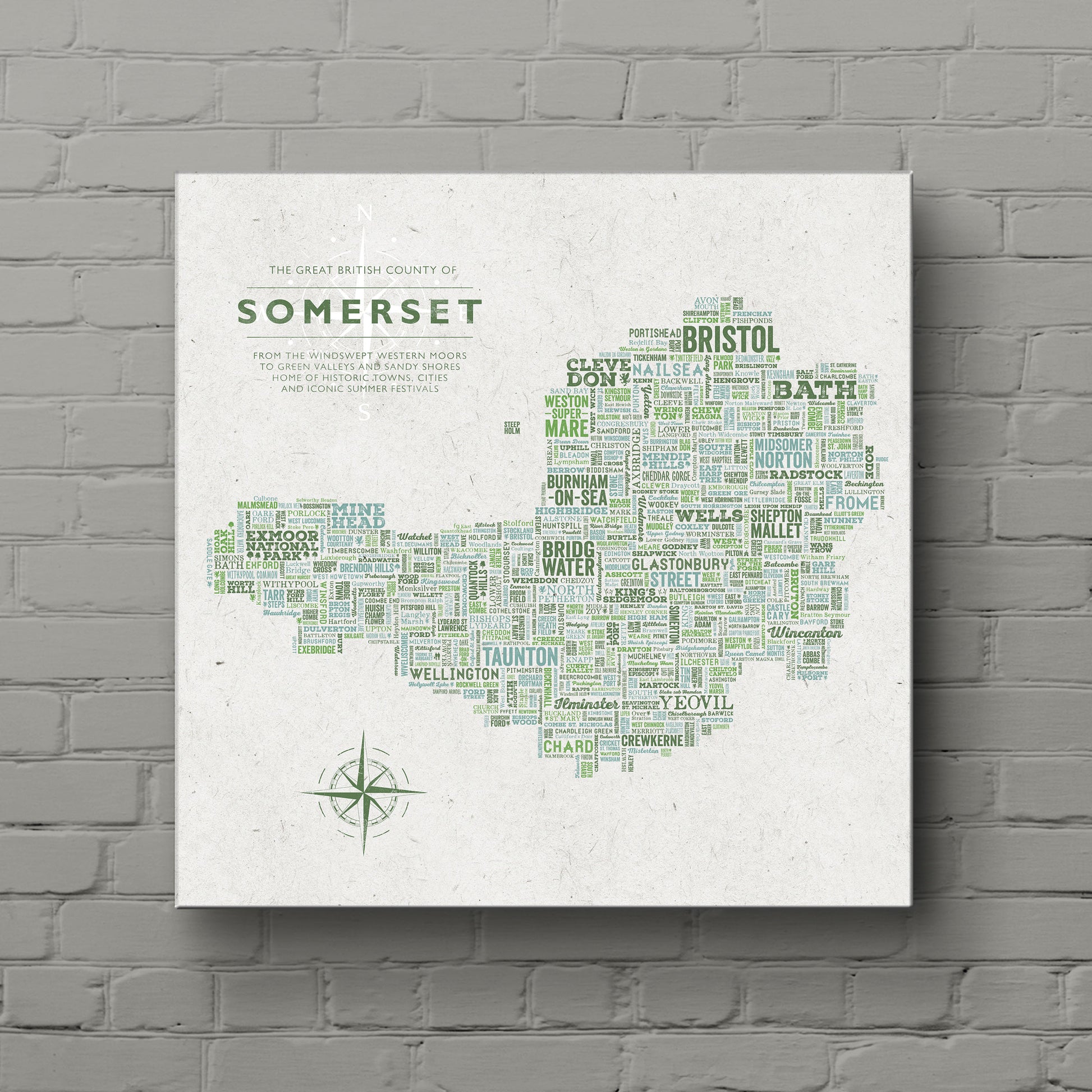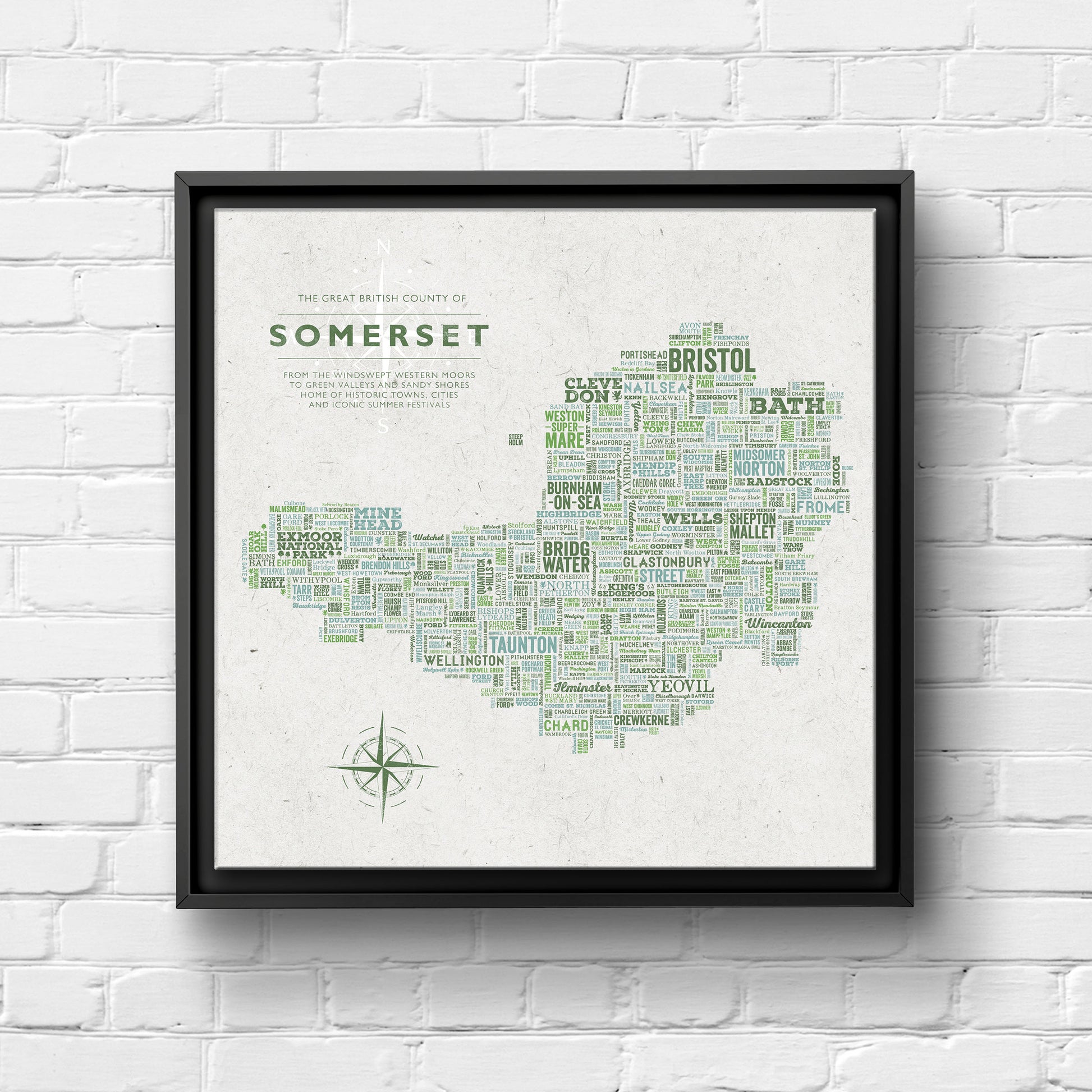 The Great British County of SOMERSET is a perfect feature for your home, as a gift, or to celebrate a milestone or special event.