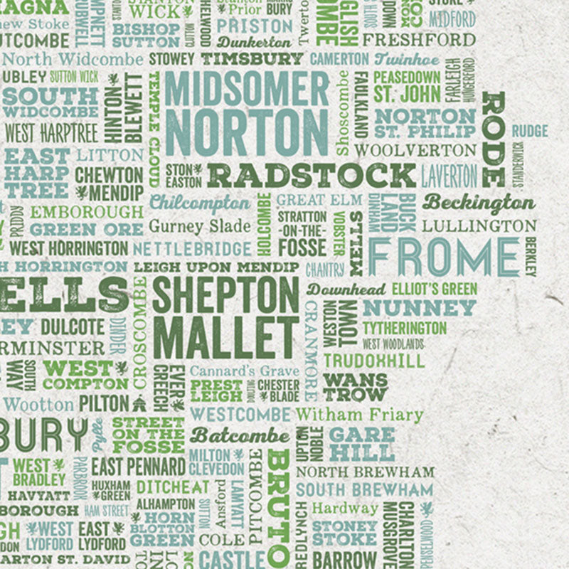 Celebrate your love for SOMERSET with this beautiful typographic map. Whether you're from Bath, Wells, Glastonbury, Taunton, Yeovil, Frome, or Cheddar - this artwork captures the spirit of the county.