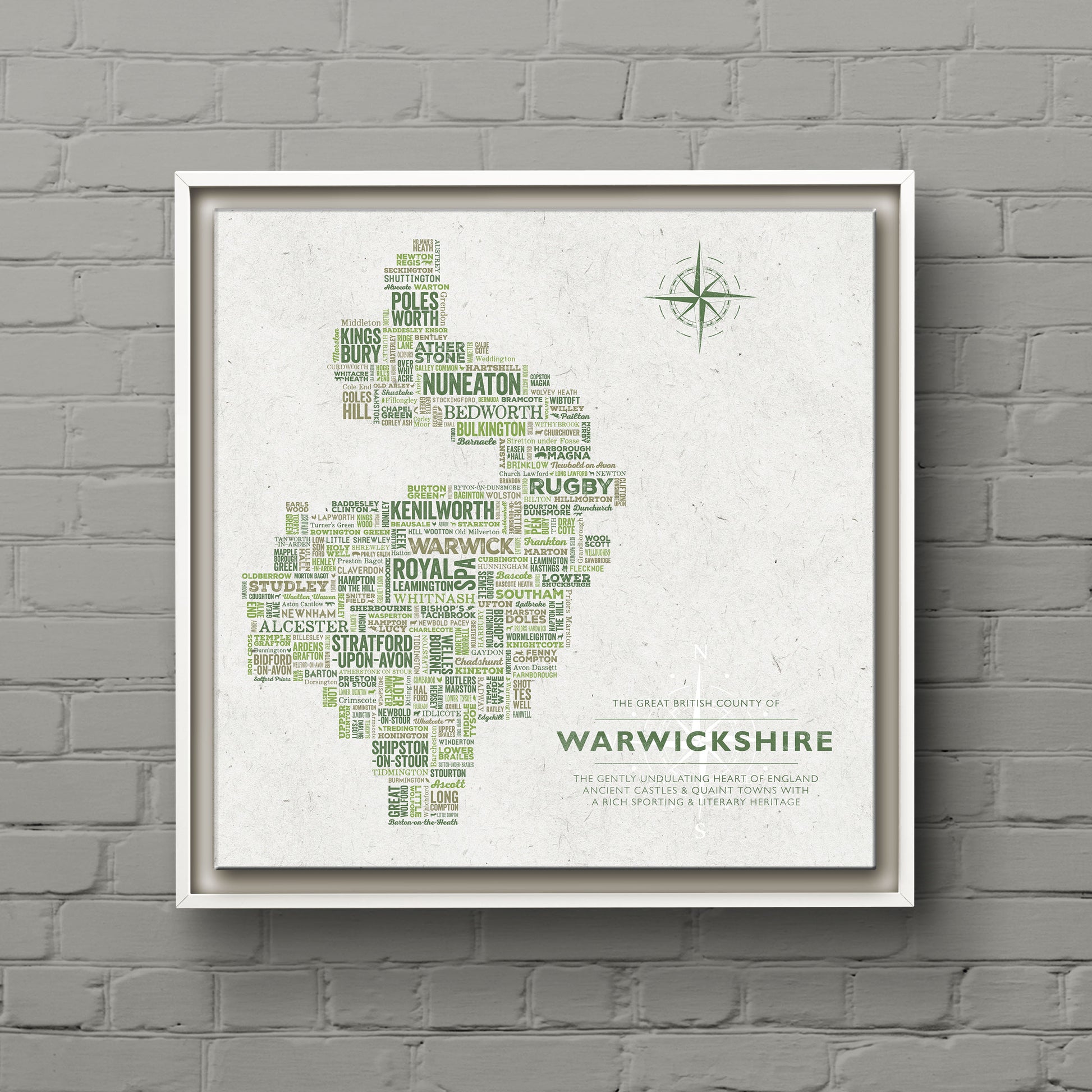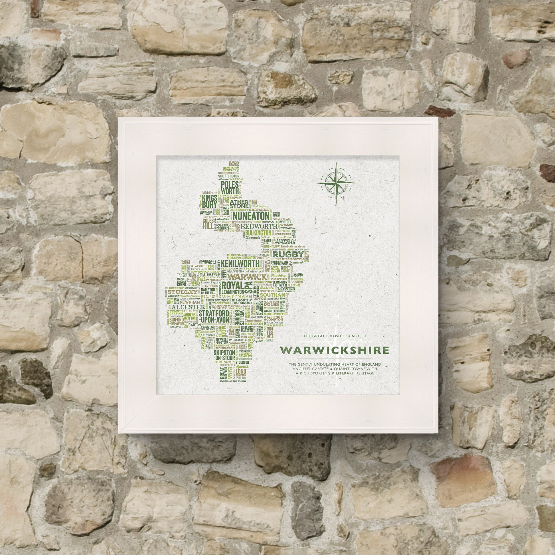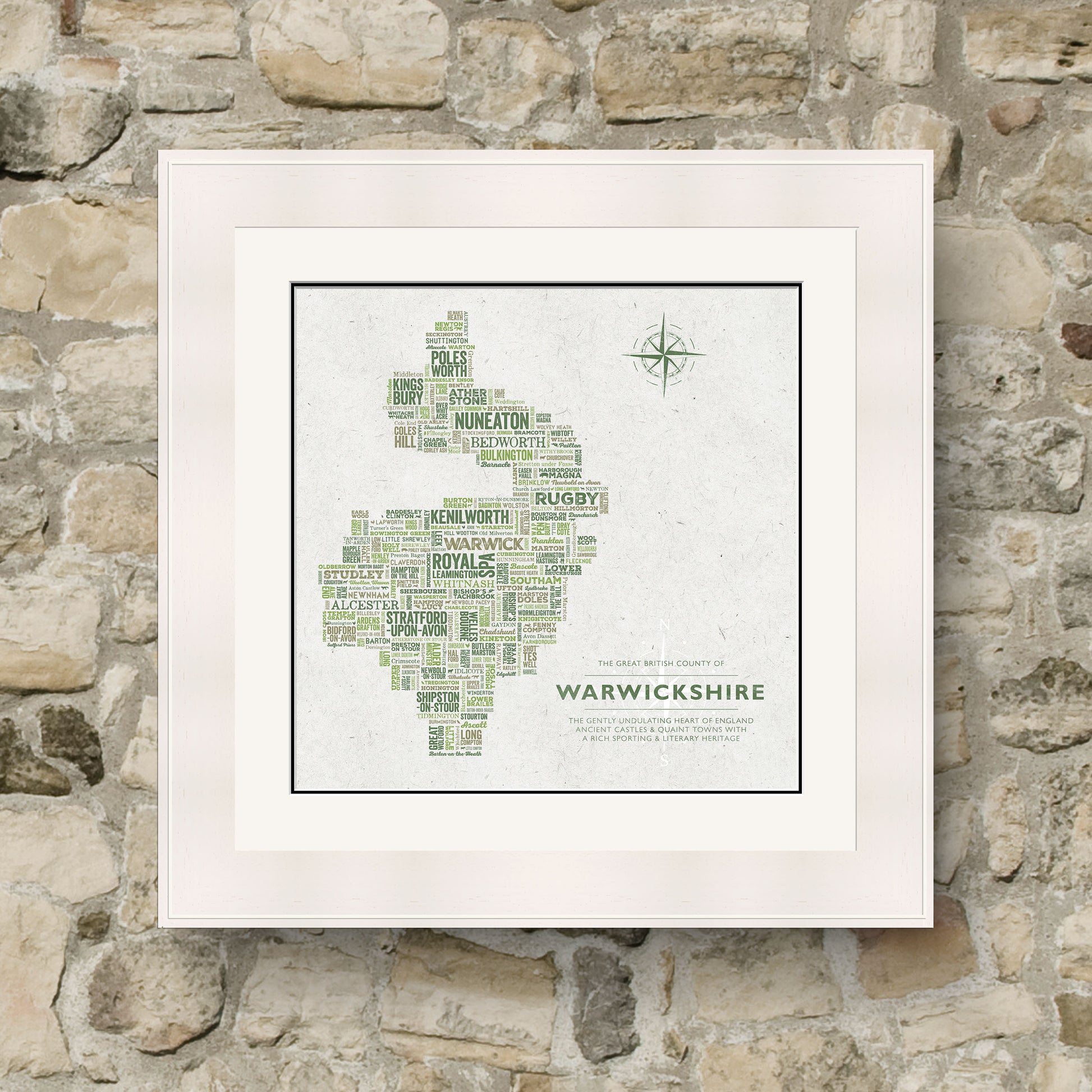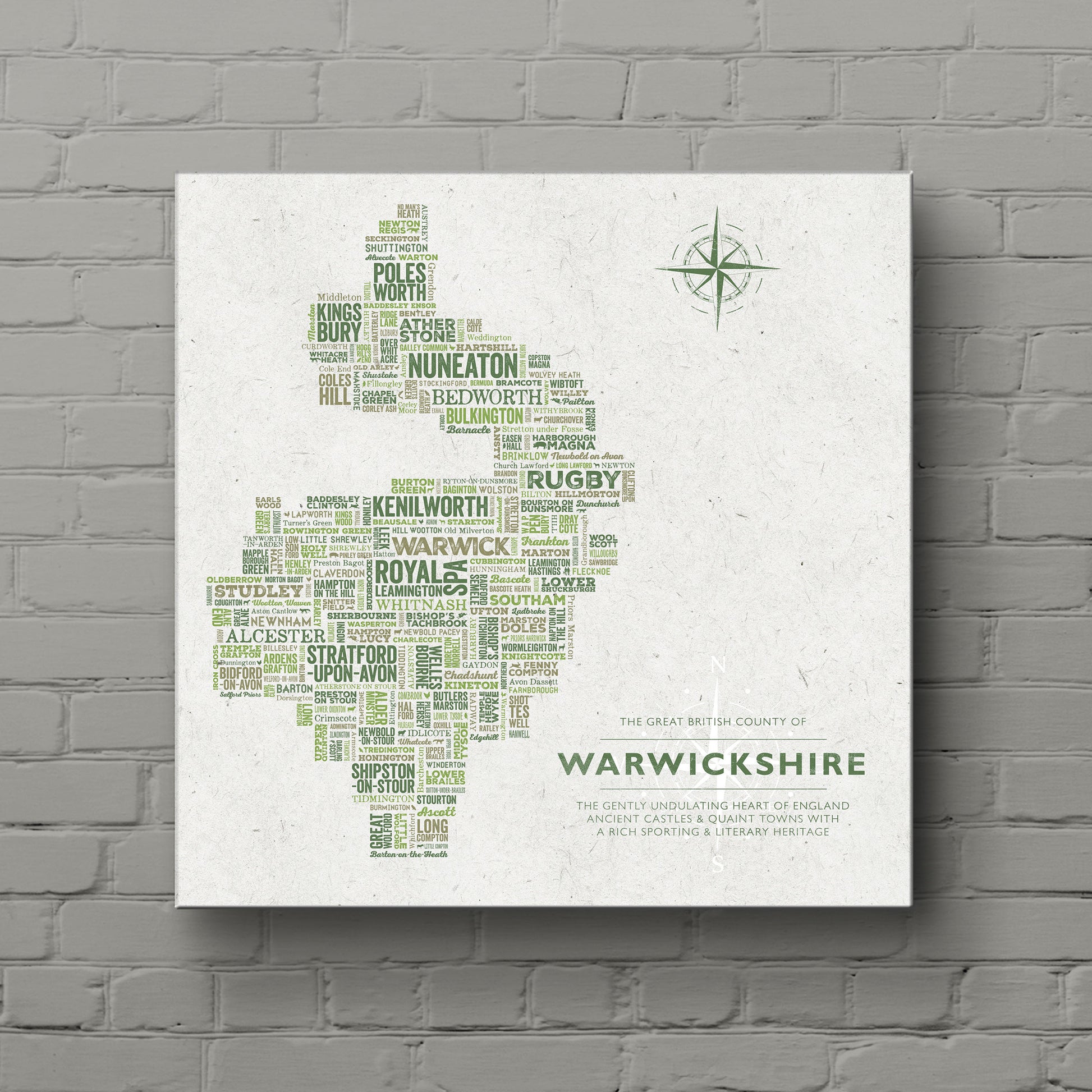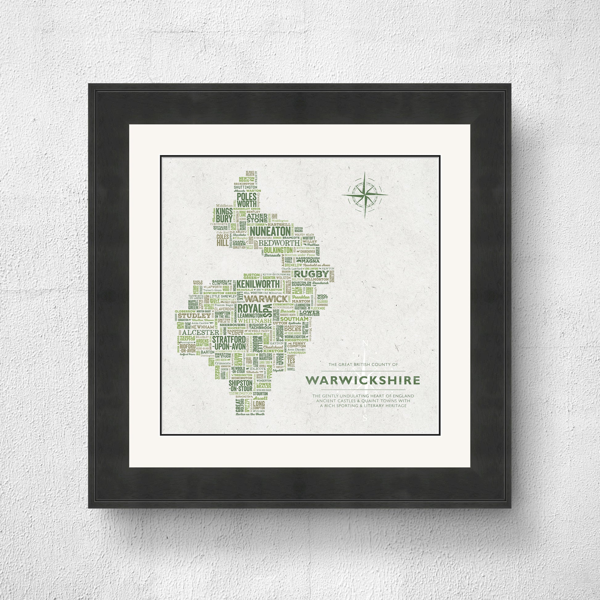 The Great British County of WARWICKSHIRE is a perfect feature for your home, as a gift, or to celebrate a milestone or special event.