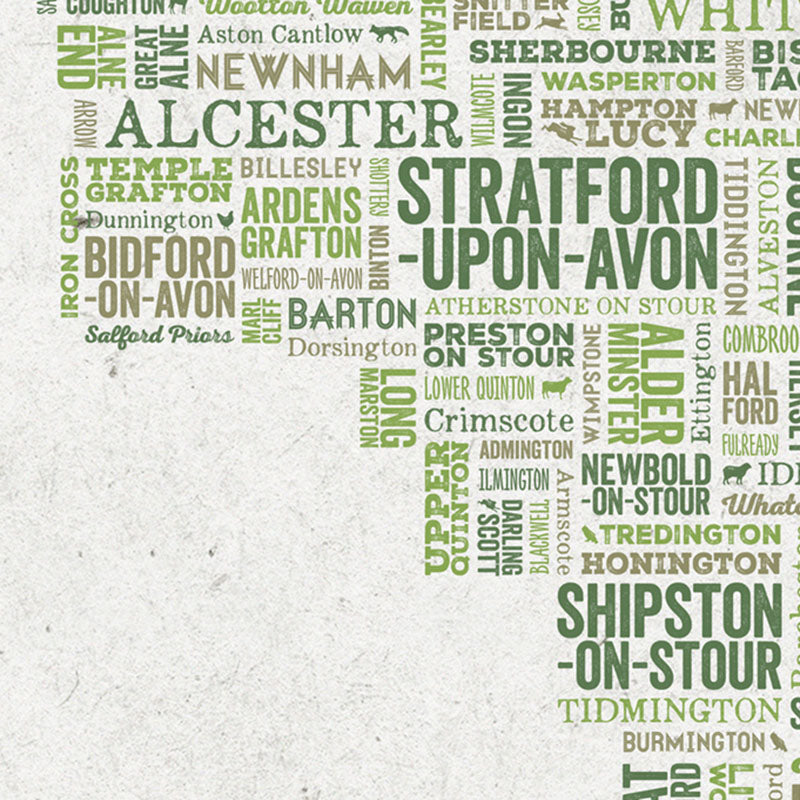 Celebrate your love for WARWICKSHIRE with this beautiful typographic map. Whether you're from Warwick, Stratford-upon-Avon, Rugby, Leamington Spa, Kenilworth, Alcester, or Nuneaton - this artwork captures the spirit of the county.