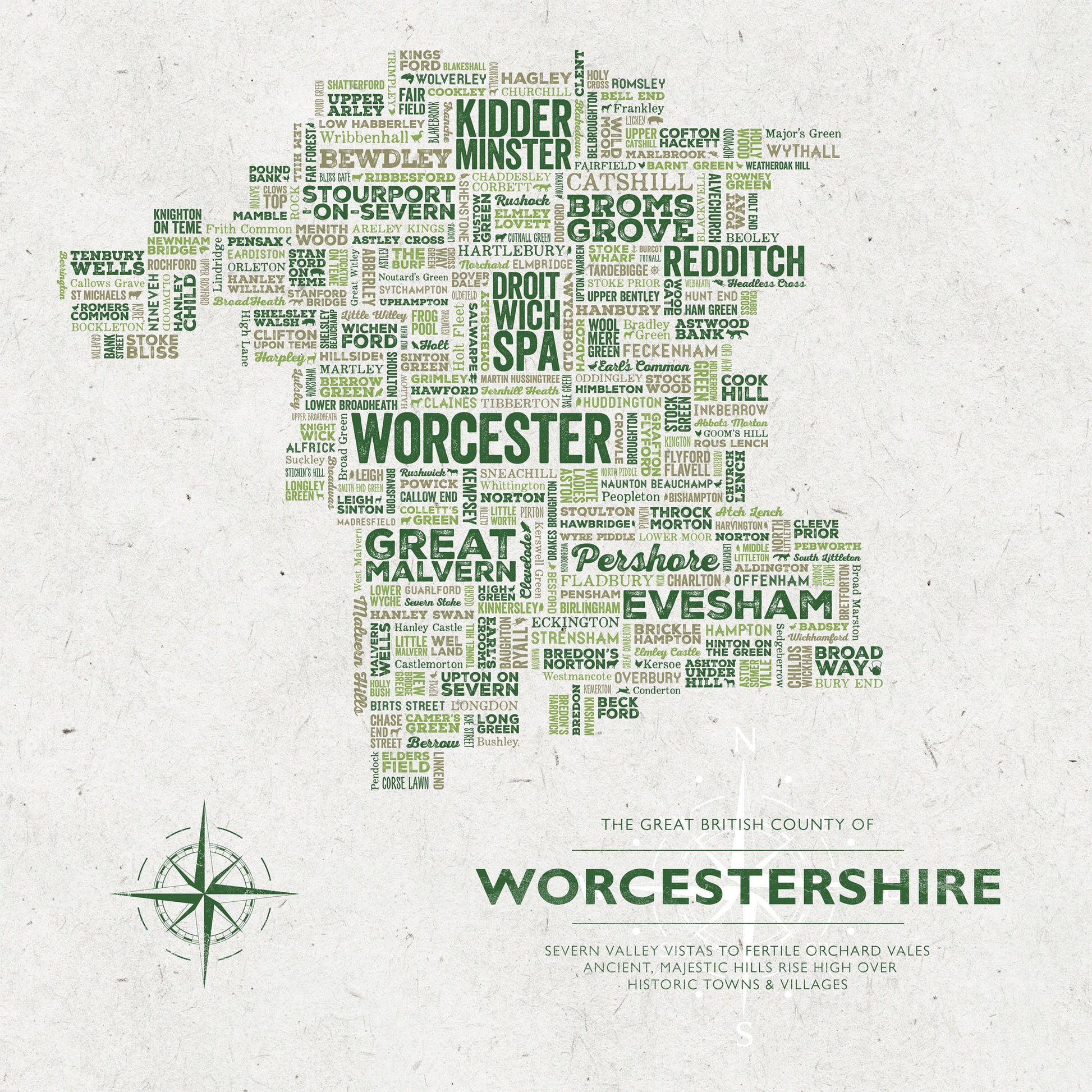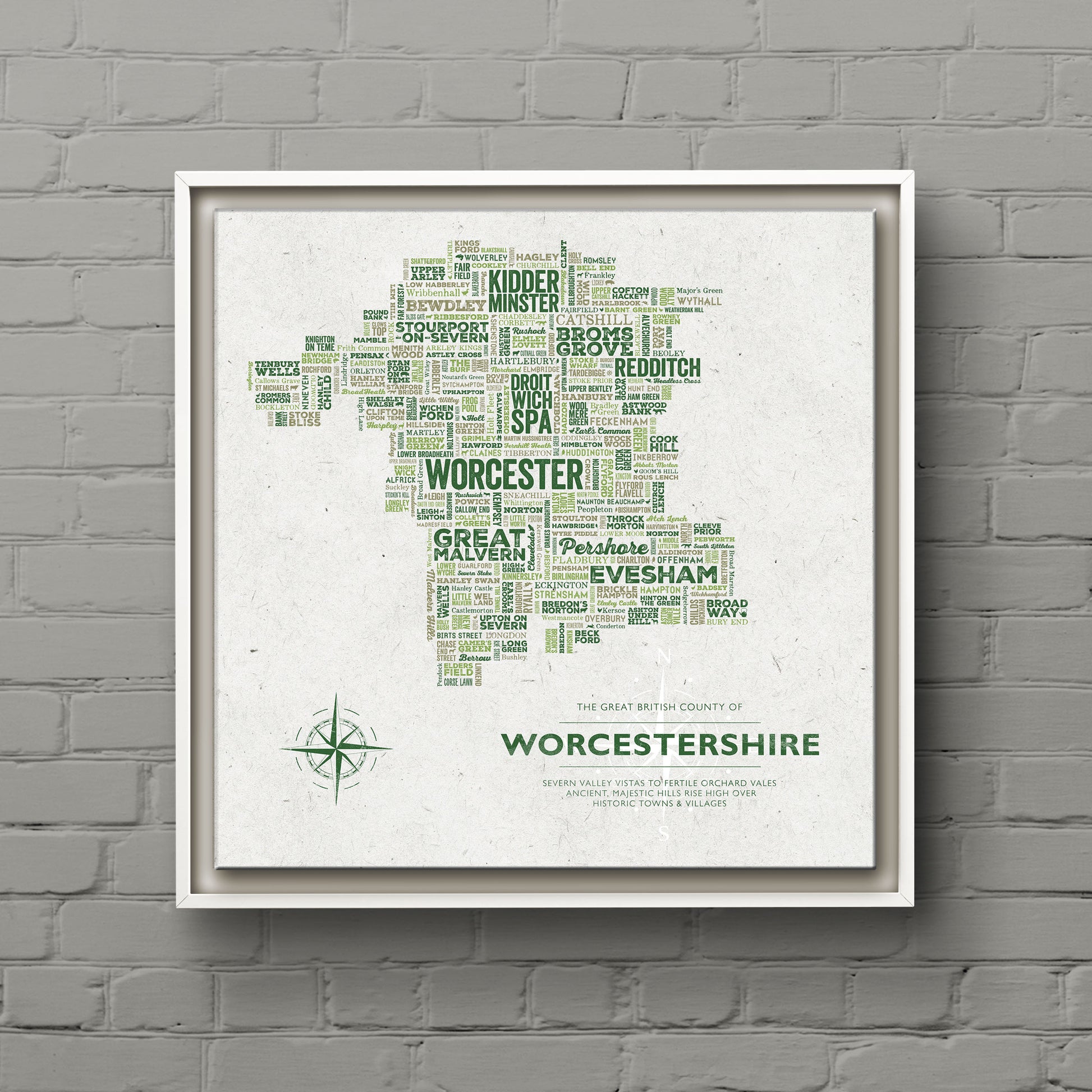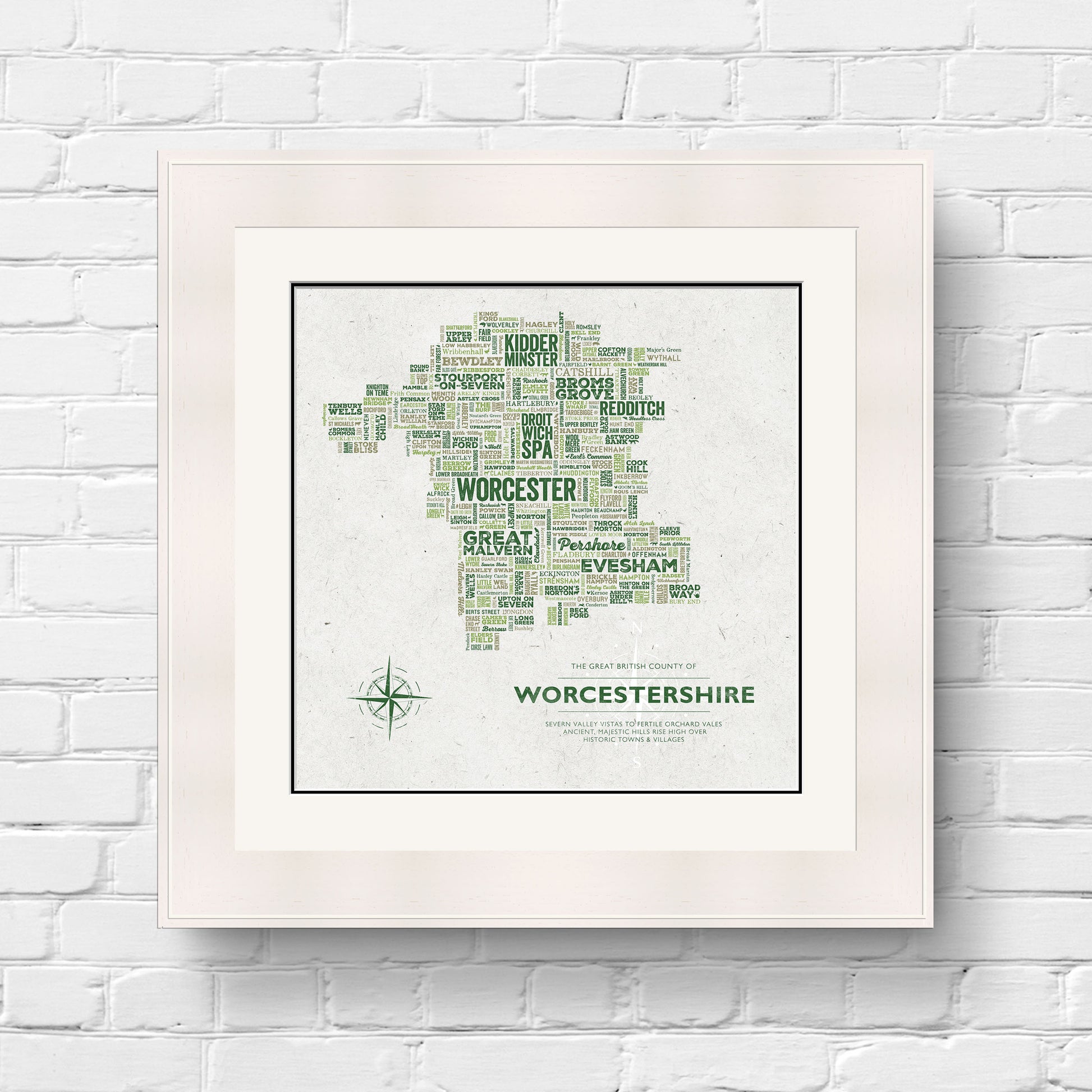 The Great British County of WORCESTERSHIRE is a perfect feature for your home, as a gift, or to celebrate a milestone or special event.